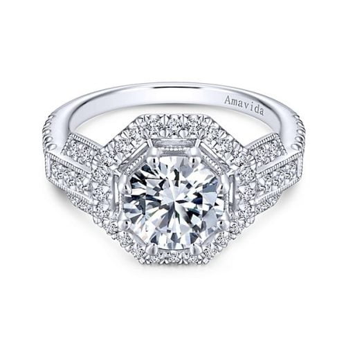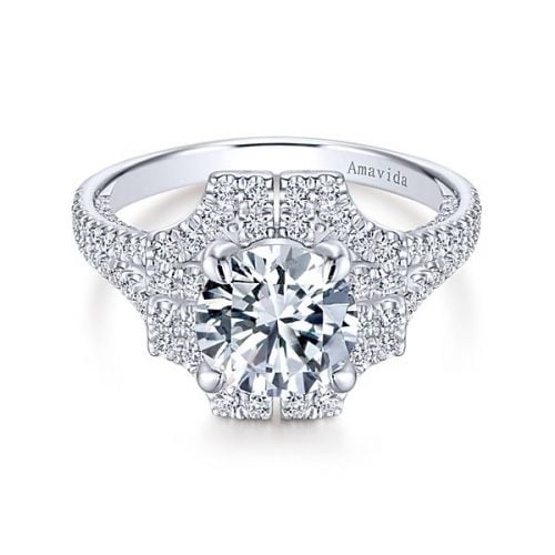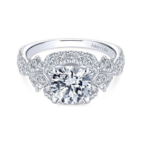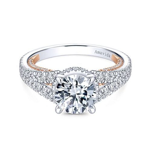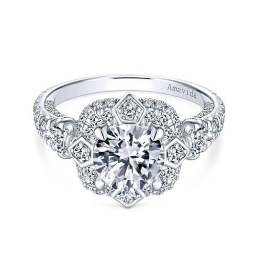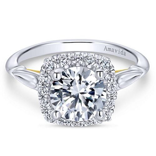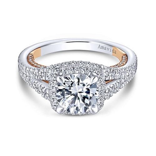 18k White/Yellow Gold Amavida Round Halo Diamond Engagement Ring