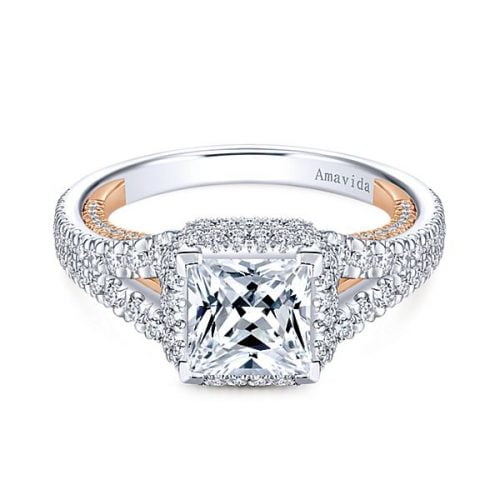 18k White/Rose Gold Princess Cut Halo Diamond Engagement Ring