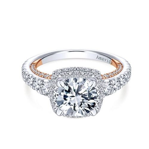 18k White/Rose Gold Round Halo Diamond Engagement Ring