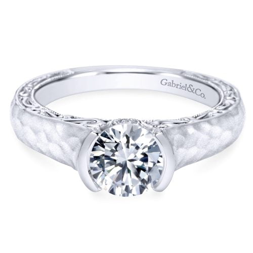 14K White Gold Riata Engagement Ring With Criss Cross Shank