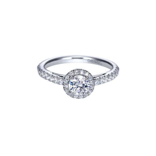 14k White Gold Contemporary Round Diamond Halo Engagement Ring