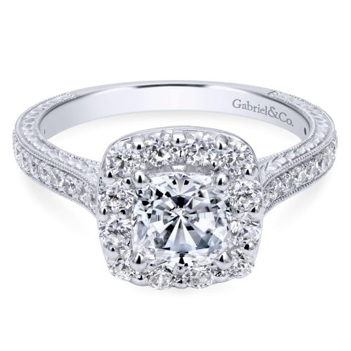 14K White Gold Cushion Cut Victorian Engagement Ring