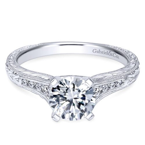 14k White Gold Round-Cut Victorian Engagement Ring