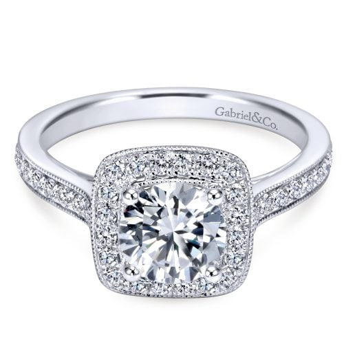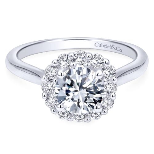 14k White Gold Shining Halo Victorian Engagement Ring