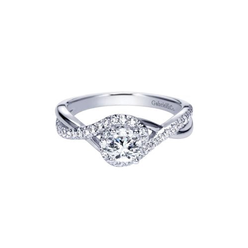 14k White Gold Diamond Criss Cross Contemporary Engagement Ring