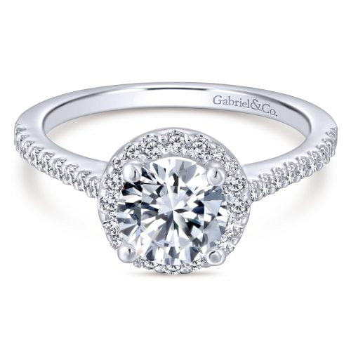 Contemporary 14K White Gold Halo Engagement Ring