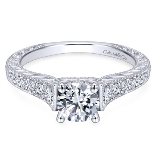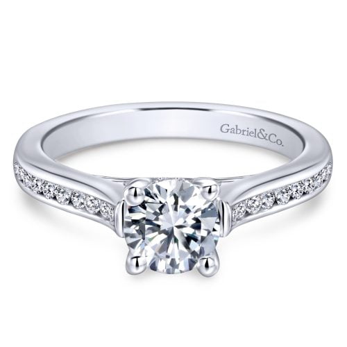 14k White Gold Round Straight Diamond Engagement Ring