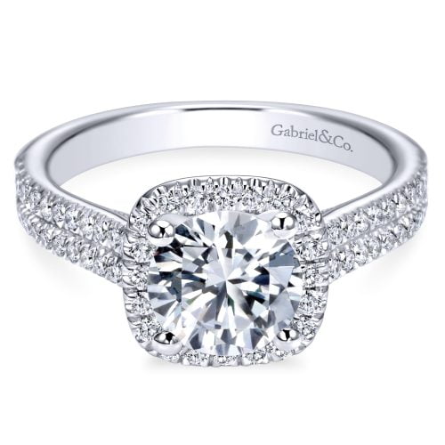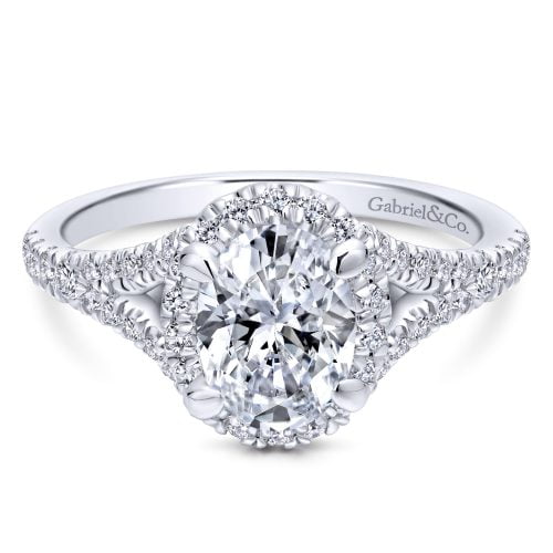 14k White Gold Round Halo Diamond Engagement Ring