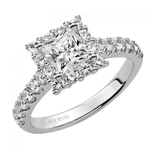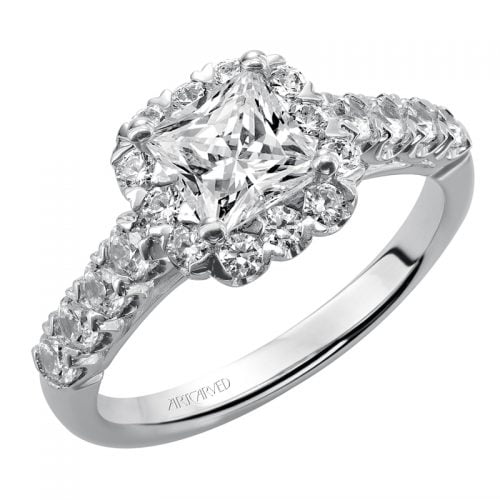 Jaime’ Princess Cut Diamond Halo Engagement Ring – 31-V440ECW