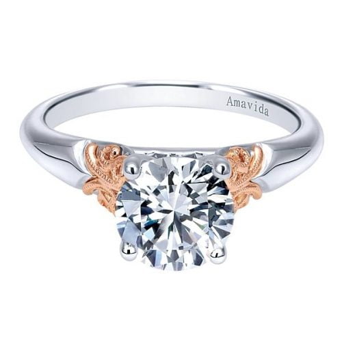 Vintage 18k White/Rose Gold Round Straight Engagement Ring