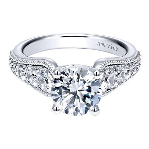 18k White Gold Round Straight Diamond Engagement Ring