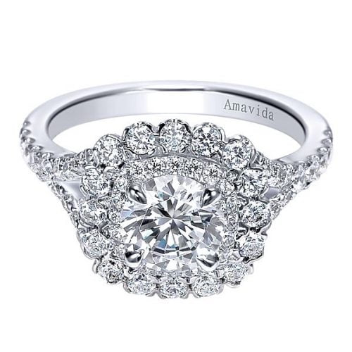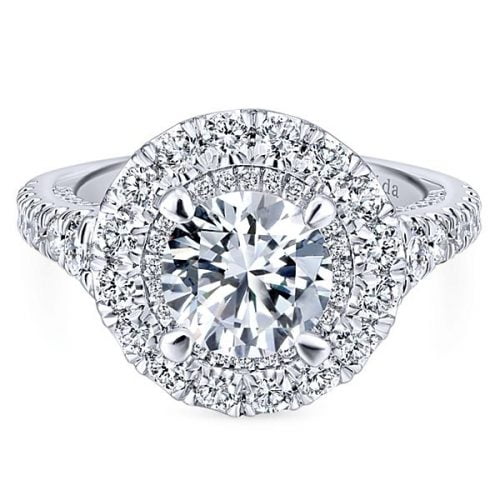 18k White Gold Round Double Halo Diamond Engagement Ring