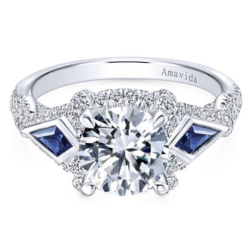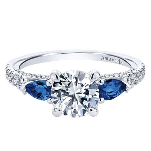 18k White Gold Round 3 Stones Diamond A Quality Sapphire Engagement Ring