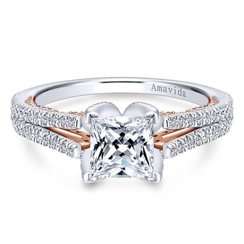 18k White/Rose Gold Princess Cut Split Shank Diamond Engagement Ring