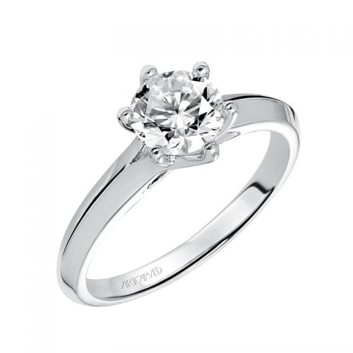 Stacy’ Six Prong Solitaire Diamond Engagement Ring With Polished Knife Edge Band – 31-V402ERW