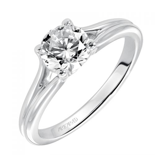 Lindsey’ Solitaire Diamond Engagement Ring With Polished Band – 31-V407ERW