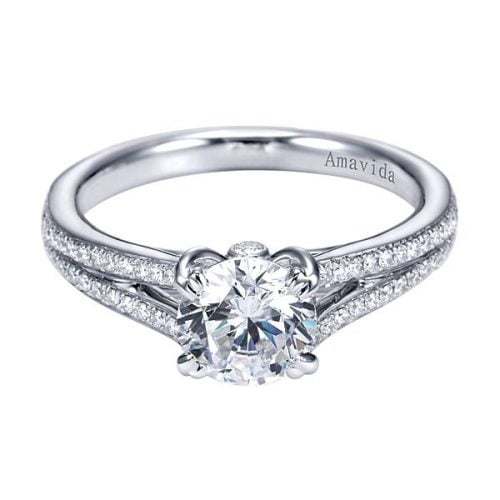 18k White Gold Round Split Shank Diamond Engagement Ring