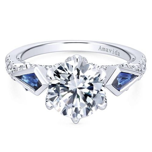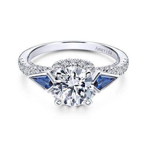 18k White Gold Round 3 Stones Diamond A Quality Sapphire Engagement Ring