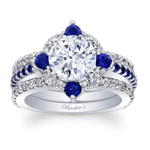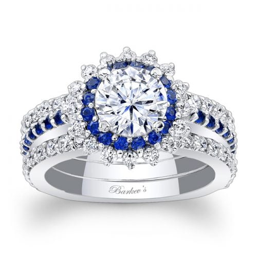 Blue Sapphire Halo Bridal Set