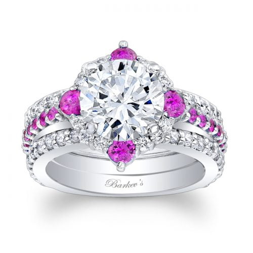 Pink Sapphire Halo Bridal Set